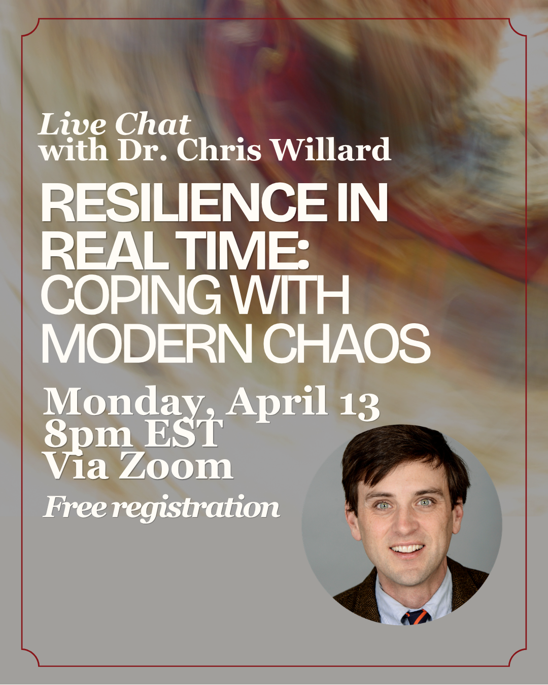 Join this Free Live Chat with Dr. Chris Willard on April 13 at 8pm via Zoom.